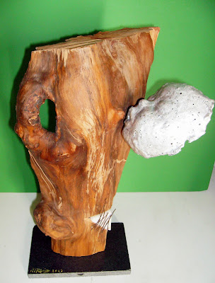ESCULTURA MISTA (VIDRO PARTIDO, MADEIRA) 40X17X80 - VIDRADO EM TI