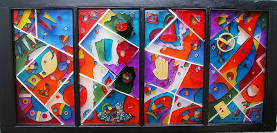 ESCULTURAS COM TAMPAS PLASTICO RECICLADAS E MADEIRA